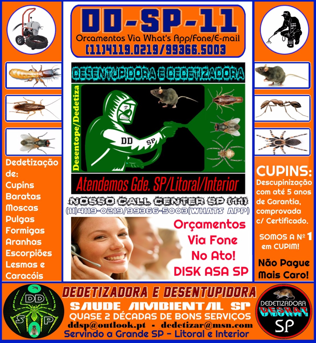 Desentupidora e Dedetizadora Alfa SP 11 4119 0219/99366 5003 Dedetização SP